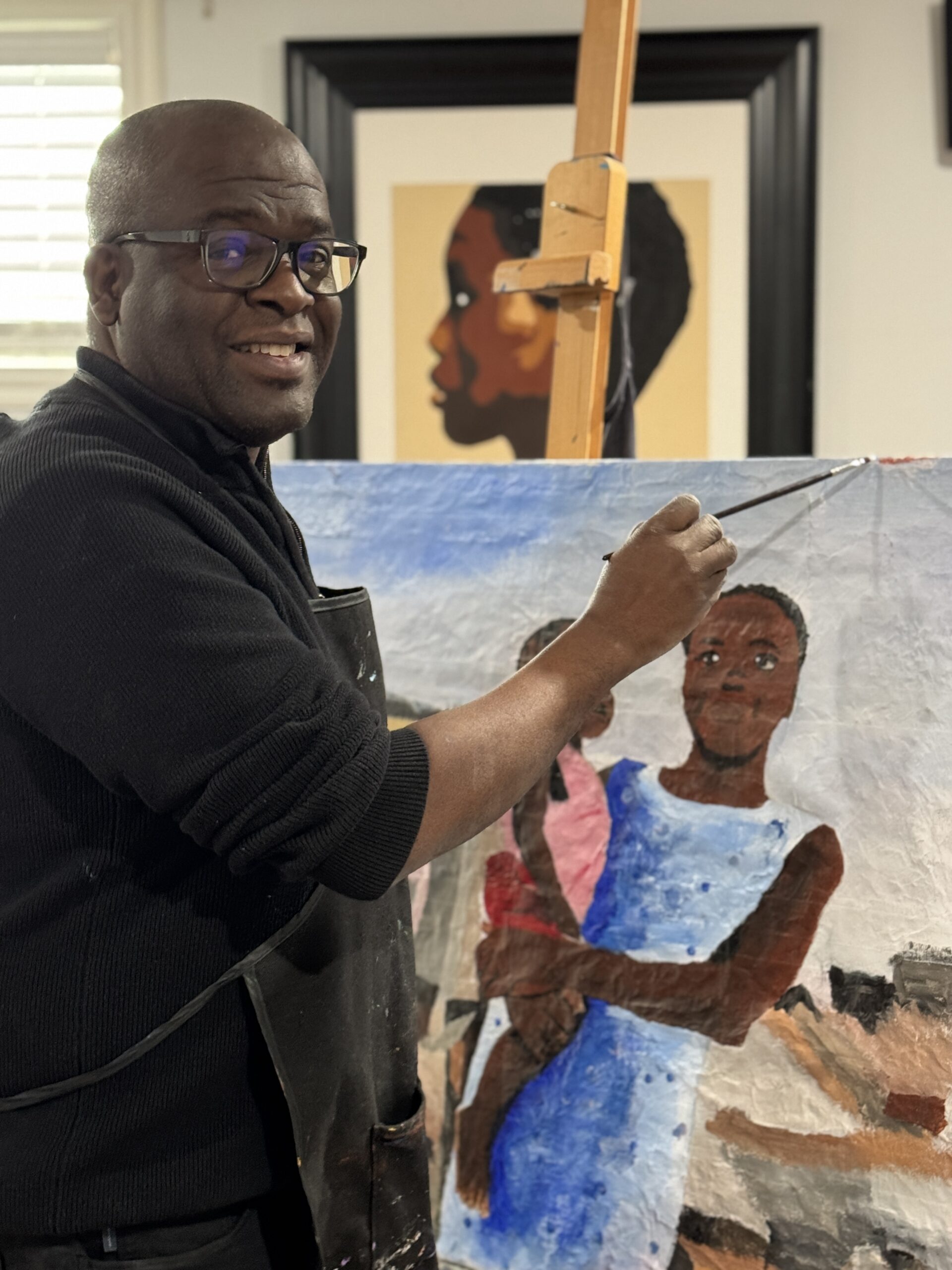 Mes valeurs fondamentales incluent l’expression de la diversité, la recherche de l’équilibre émotionnel, et la célébration de la beauté des peuples noires. Ces principes guident chaque coup de pinceau et chaque projet artistique que j’entreprens.